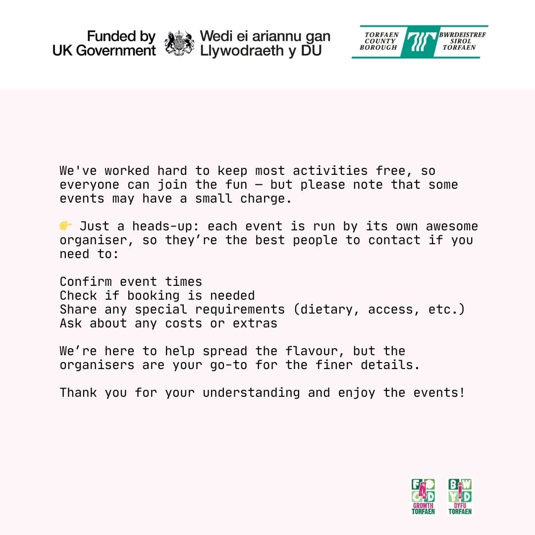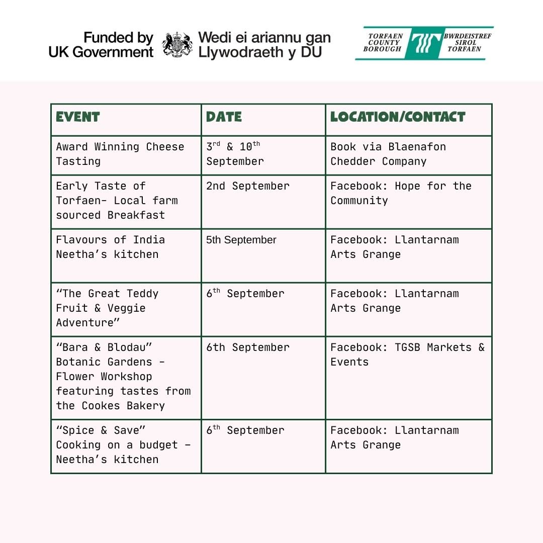 The event is run by Food 4 Growth Torfaen and is shining a spotlight on the amazing food, flavours, and foodie talent across our borough. Click to enlarge the pictures below to see all the events happening during the two weeks.